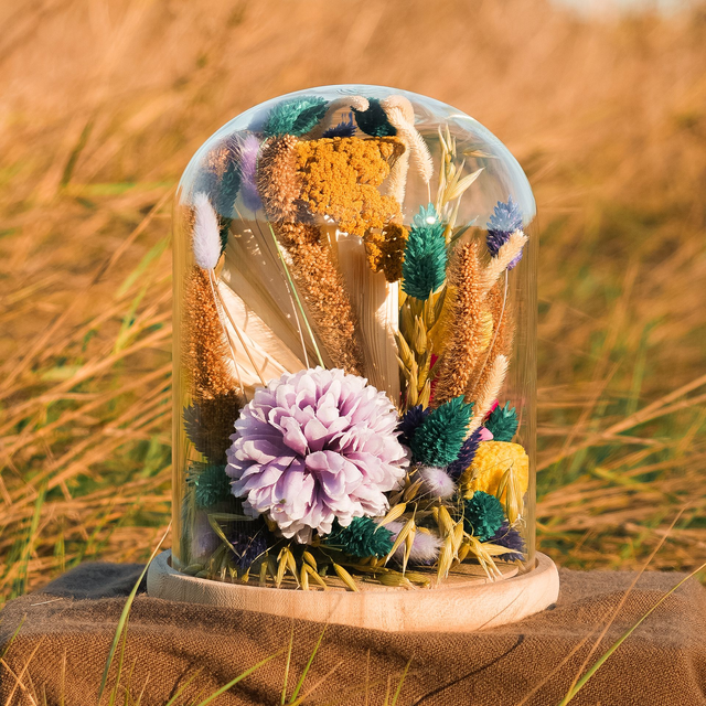 Chaque fleur séchée, minutieusement positionnée à la main, crée une petite scène florale lumineuse, empreinte de fraîcheur et de poésie.